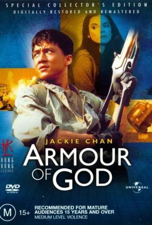 Опасные авантюры и невообразимые приключения – жизнь Джеки Чана вряд ли можно назвать бесцветной и скучной. Недаром он получил кличку «Азиатский ястреб»: трудно найти равных ему в поиске затерянных кладов и удивительных сокровищ. Вот и сейчас в результате одной из своих блистательных операций Джеки становится владельцем ритуального меча, обнаруженного им на просторах «черного континента». Но если бы он знал, что этот предмет входит в знаменитые доспехи Бога, которые нужно тщательно оберегать от сил зла, он был бы более осторожным. Ведь от доспехов сохранилось лишь пять предметов, и пособники тьмы ведут ожесточенную охоту за ними.